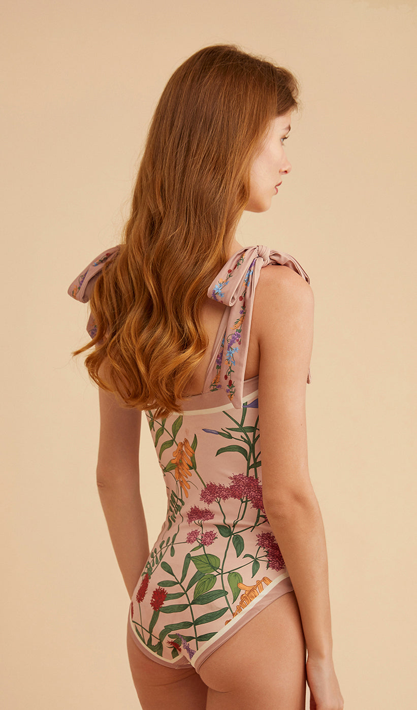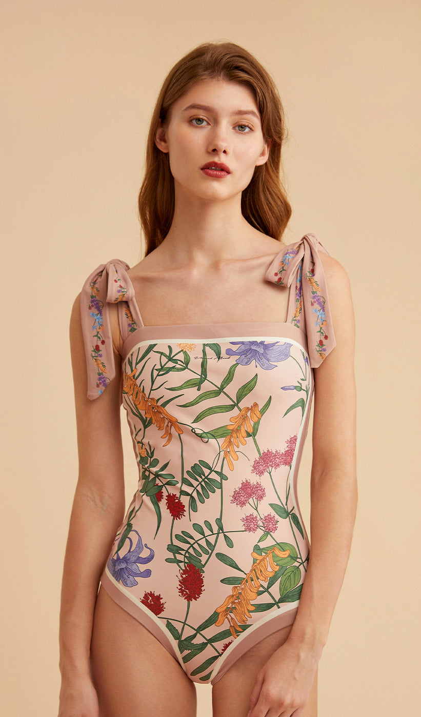 I love how this bathing suit is designed with two prints. The material is not only beautiful, but comfortable to be in. So happy with my purchase. I immediately received compliments since the design with the self-tie straps is not a typical feature with most bathing suits. Im looking forward to ordering another bathing suit next season!